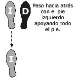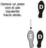 Ahora vamos a hacer los pasos contrarios (es decir, vamos a volver a la posición inicial). Damos un paso atrás con el pie izquierdo.
