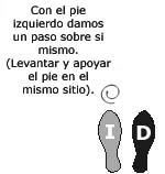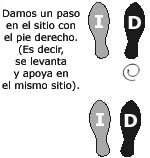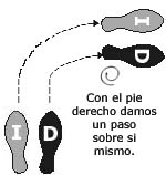 Con el pie derecho damos un paso sobre si mismo (que consiste en levantar el pie y dejarlo de nuevo en la misma posición al bajar).