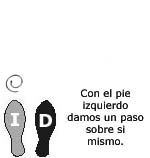 Y damos un paso sobre si mismo con el pie izquierdo (recuerde, levantar y dejar el pie en el mismo sitio).